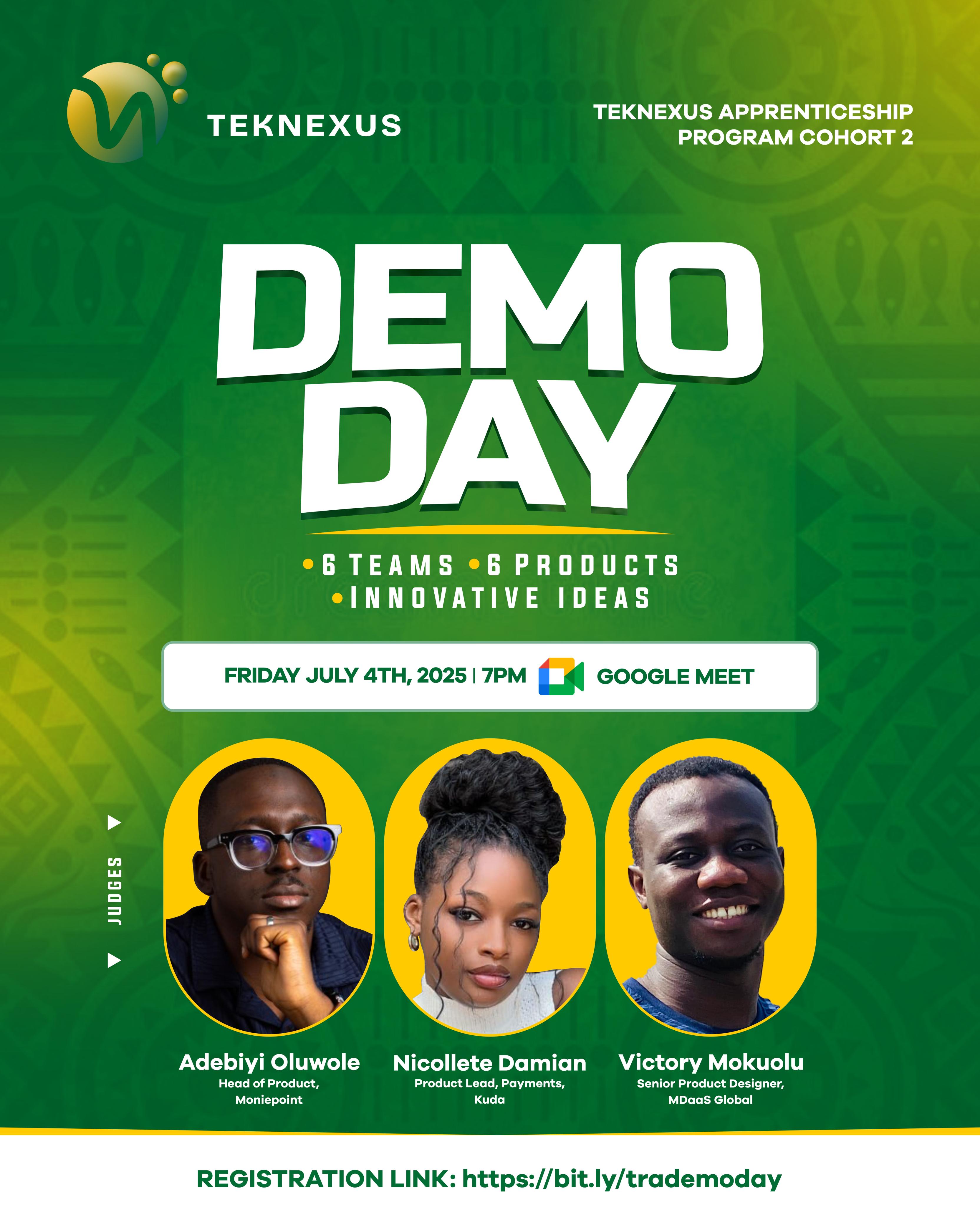 Leaders from Moniepoint, Kuda, and more were at the TekNexus Apprenticeship Program 2.0 Demo Day to judge 6 pitches from 6 product teams.